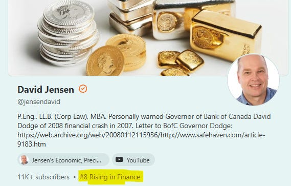 Yesterday, this Substack was ranked #4 Climbing and today it is ranked #8 Climbing of all Finance sites on Substack.